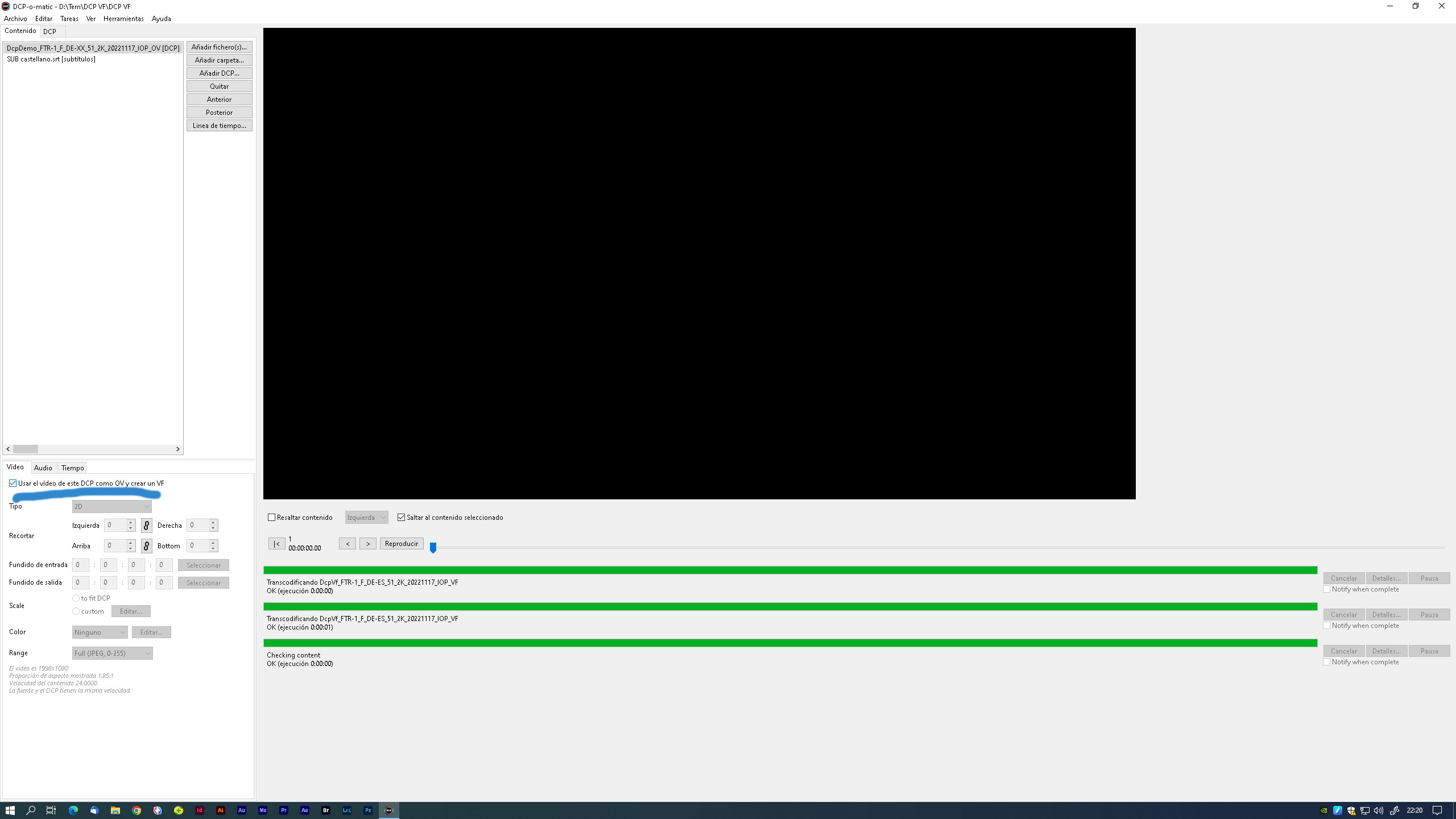 | Description | hello I have generated several DCPs so use the video from another dcp and when playing it only reproduces the new audio from the DCP VF, the image is not found from the previous DCP. The two DCPs are in the same folder!! I have tried several DCP players and none of them do it right. I think it's a bug in the new versions. | ||||