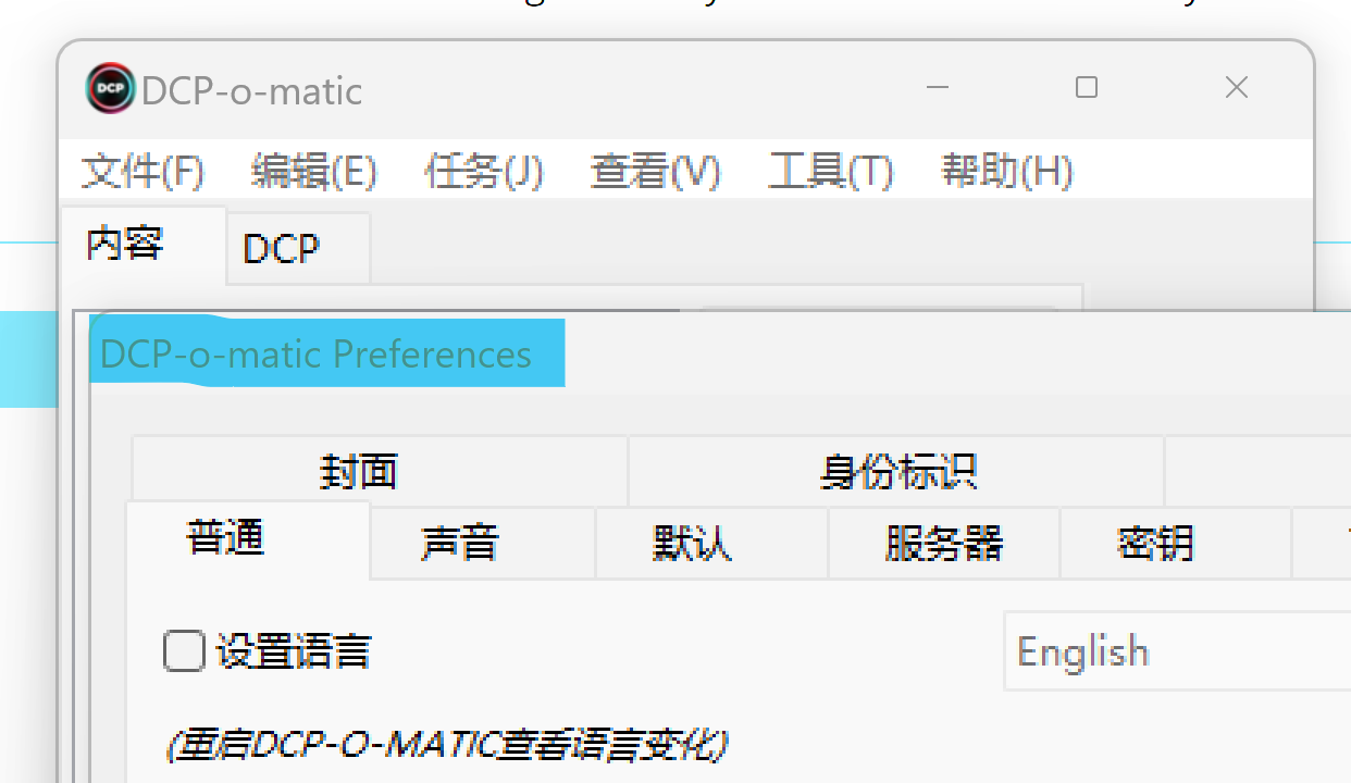 As far as I know, the translation for "Preferences" should come from the wxWidgets library - does it not translate for you? What language is your computer/DCP-o-matic set to? |