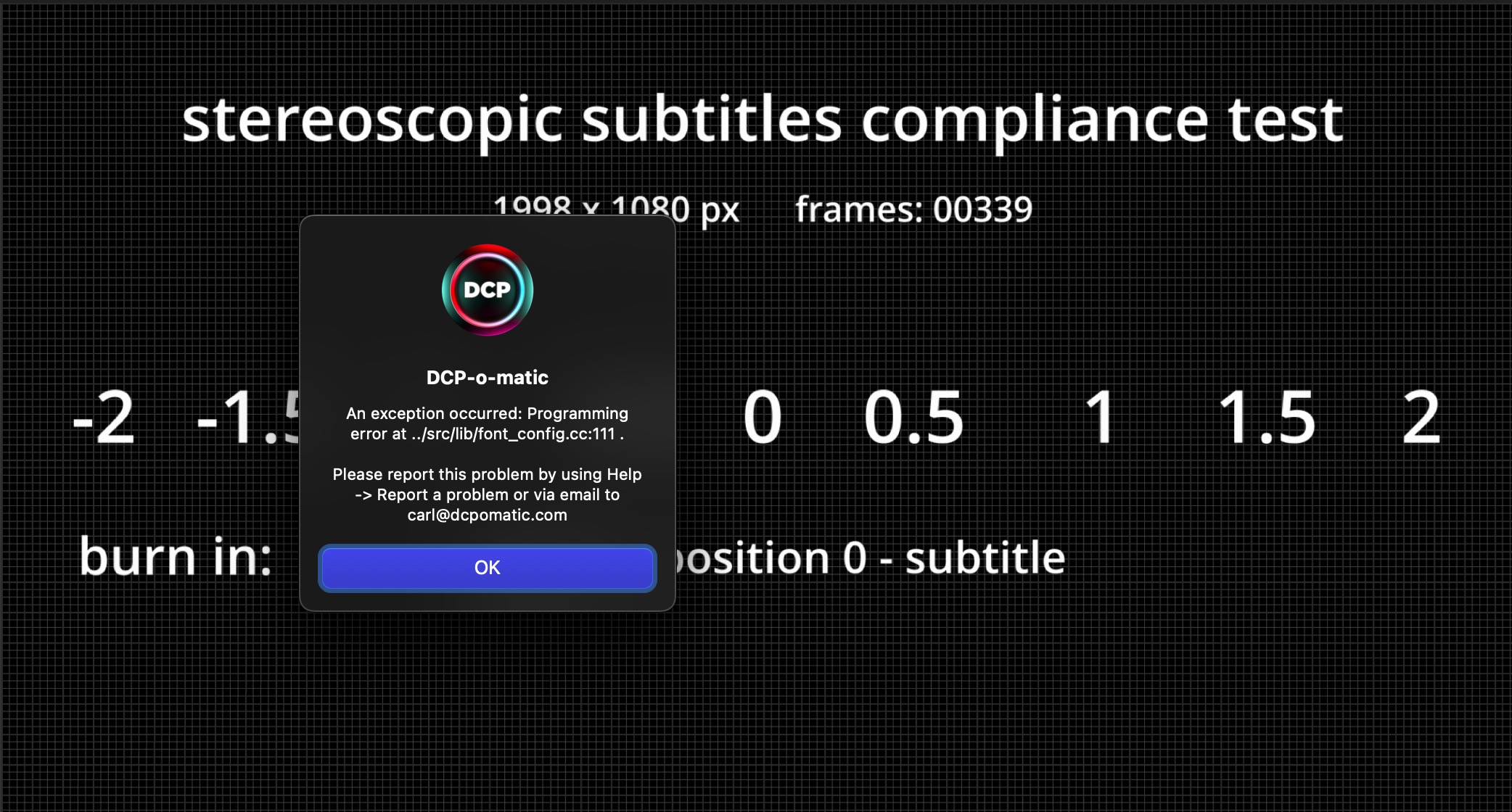 | Description | after opening my stereoscopic 3D project. An exception occurred: Programming error at ../src/lib/font_config.cc:111 . | ||||